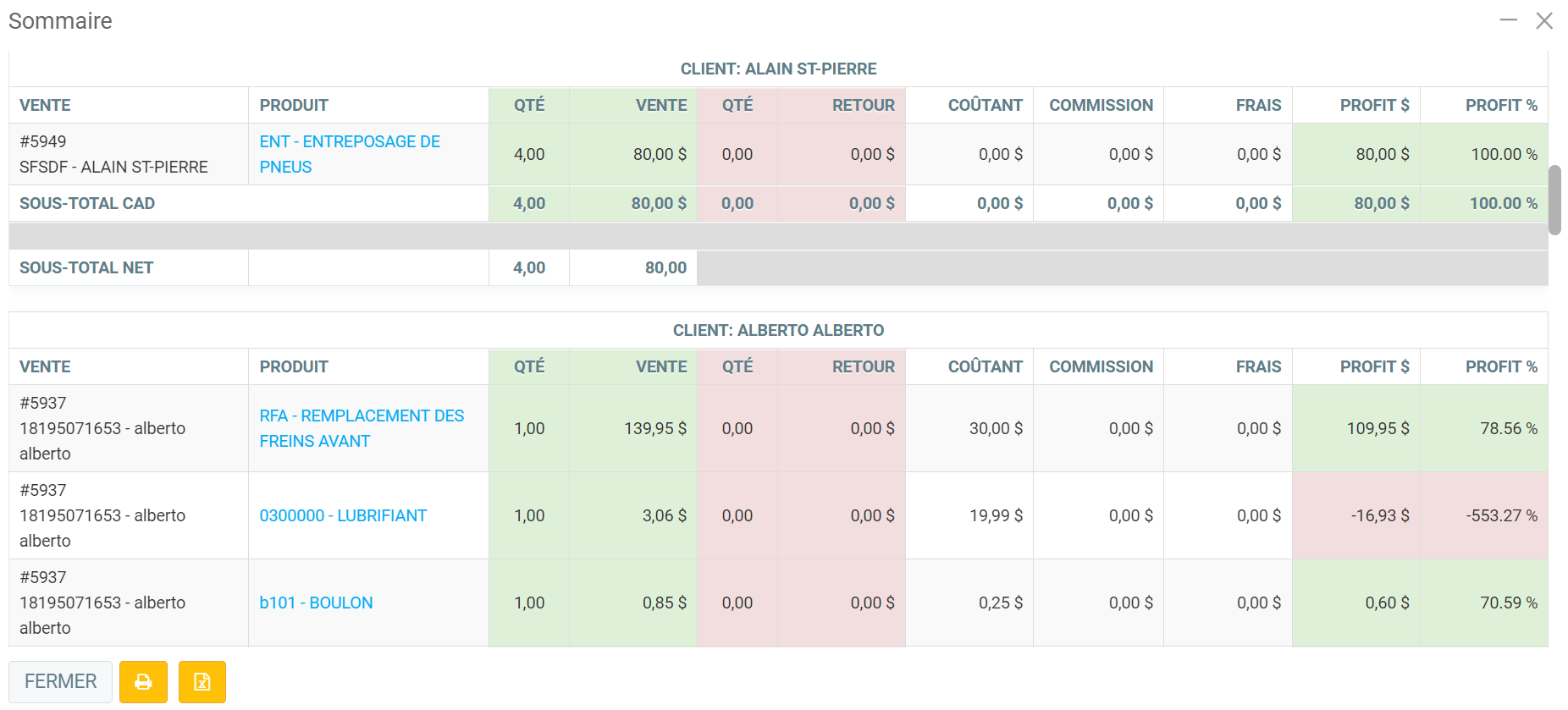 Ce rapport peut être imprimé ou converti en PDF en cliquant sur les boutons jaunes dans le coin gauche de la page, à côté du bouton Fermer.