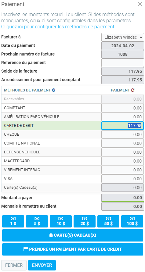 Utilisez la touche F4 ou cliquez sur paiement dans le coin inférieur droit.
